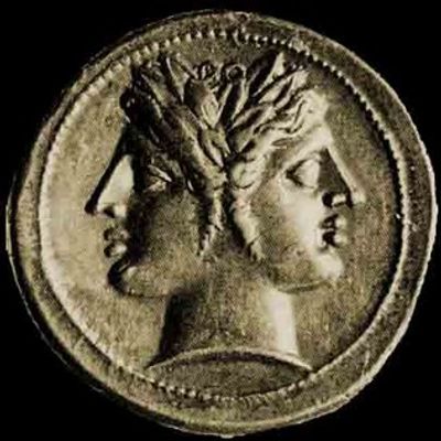 Photo: Ancient coin showing the double-faced Roman god Janus.
